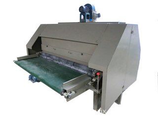 将加工的纤维清理干净,去除其中的金属、硬杂等物,均匀地(不可过厚)铺在自动进料帘上,可实现自动进料;帘子将纤维送到罗拉口,由罗拉将纤维挤紧送到刺辊前,纤维即被刺辊钩拉着松开。其中杂质受刺辊离心力的作用,将沿刺辊的切线方向抛出。纤维通过锡林、工作辊、转移辊多次反复转移、梳理、混合均匀,再由道夫经剥棉机构剥离后输出一层一像纸一样薄的纤维;用细竹杆理上卷棉筒即可实现自动卷棉。成形棉卷在运转的卷棉筒上用双手一拉(或竹杆一卷剥或用剪刀剪断)即可随卷棉筒输出(160型机无需抖动,出棉宽度可控制),输出的棉卷放在铺棉板上轻轻的抖一抖,就能达到我们需要的长度和宽度。