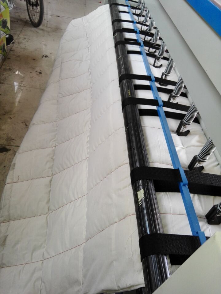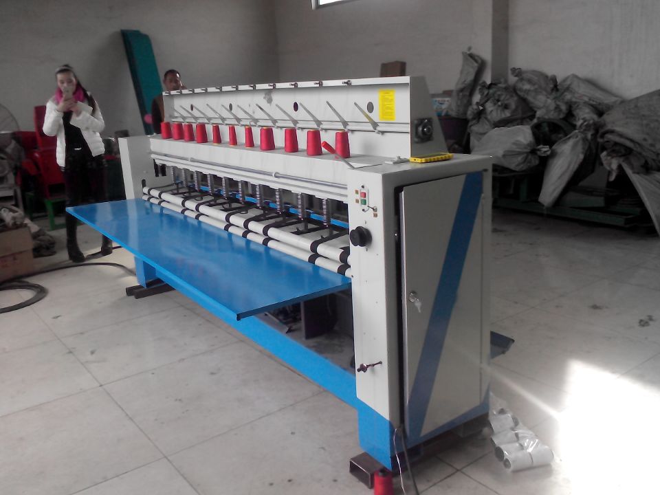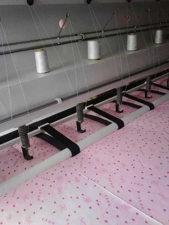 山东精梭全自动旋梭型仿手工引被机:新一代全自动引被机,不留被头,一人操纵,简单快捷。我公司开发研制的新一代旋梭型仿手工引被机,采用超大旋梭,一次可绗缝200条被子,不用换底线,枢纽部门精心设计,两分钟可引一床被,线条笔挺好看,针距平均大小可调。全自动旋梭型仿手工引被机;有九针,七针两种机型,长度不限,是取代传统跪爬式一针一线手工引被的高科技产品。