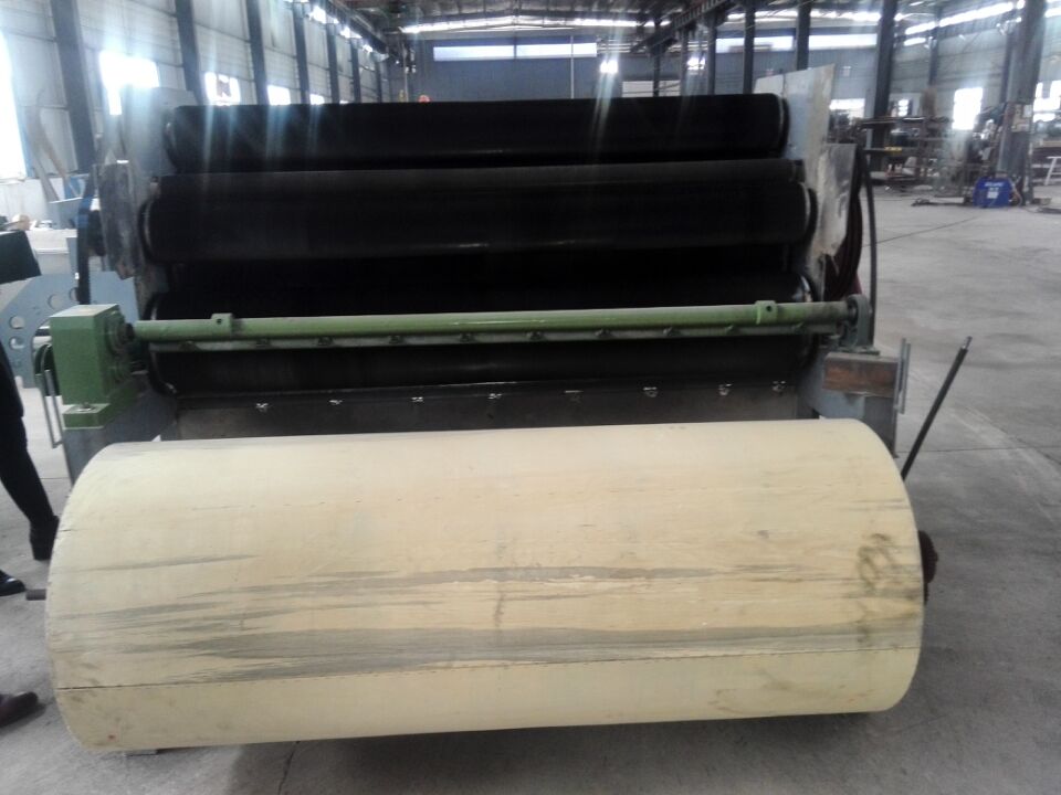 将加工的纤维清理干净,去除其中的金属、硬杂等物,均匀地(不可过厚)铺在自动进料帘上,可实现自动进料;帘子将纤维送到罗拉口,由罗拉将纤维挤紧送到刺辊前,纤维即被刺辊钩拉着松开。其中杂质受刺辊离心力的作用,将沿刺辊的切线方向抛出。纤维通过锡林、工作辊、转移辊多次反复转移、梳理、混合均匀,再由道夫经剥棉机构剥离后输出一层一像纸一样薄的纤维;用细竹杆理上卷棉筒即可实现自动卷棉。成形棉卷在运转的卷棉筒上用双手一拉(或竹杆一卷剥或用剪刀剪断)即可随卷棉筒输出(160型机无需抖动,出棉宽度可控制),输出的棉卷放在铺棉板上轻轻的抖一抖,就能达到我们需要的长度和宽度。