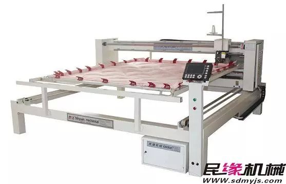 电脑绗缝机批发 【山东民缘机械】全自动电脑缝被机厂家报价联系电话 18363500003 马总 微信同号适用范围: 该设备可广泛适用各种被子、睡袋、床罩、窗帘的绗缝;适合各种加工店、被褥加工厂、蚕丝被生产使用; 适合商场、门市等专卖店或车载流动作业。产品特性: 本厂根据不同用户群体而开发的一款高效、简洁、精密型绗缝机.具有占地面积最小、自动化程度高,绗缝精度高,性价比是未来市场普及率最广的产品。 设备特点: 1、机器占地只有其他绗缝机的3/5。 2、同步皮带传动,绗缝精度高,噪音低。 3、断线检测装置,断线自动停机。工作灯,方便穿线。 4、电脑、电机等发生异常现象机器会自动停止工作,同时画面显示故障内容。 5、花样采用DST打版系统,电脑中已存280个绗缝花样。 6、配USB接口,支持U盘输入花型文件。 7、停电记忆功能,停电后能自动寻找轨迹继续绗缝。 8、机械原点功能,所有的操作都不再需要量尺寸。 主要技术参数: 机器型号 MY-9-A MY-9-B MY-9-C 可定做 机器占地尺寸 3.0m*2.8m*1.3m 3.2m*3.0m*1.3m 3.4m*3.2m*1.3m 可定做 装被尺寸 2.0m*2.3m 2.2m*2.5m 可定做 落针尺寸 1.9m*2.2m 2.1m*2.4m 2.4m*2.6m 可定做 针速 300-2200针/分钟 针距 2-12mm 绗缝厚度 ≥1200g/㎡ 机头性能 单头、单针、大旋梭 电源 220VAC、50Hz、1.5Kw 生产能力 2-3分钟/床 联系电话 18363500003 马总 微信同号