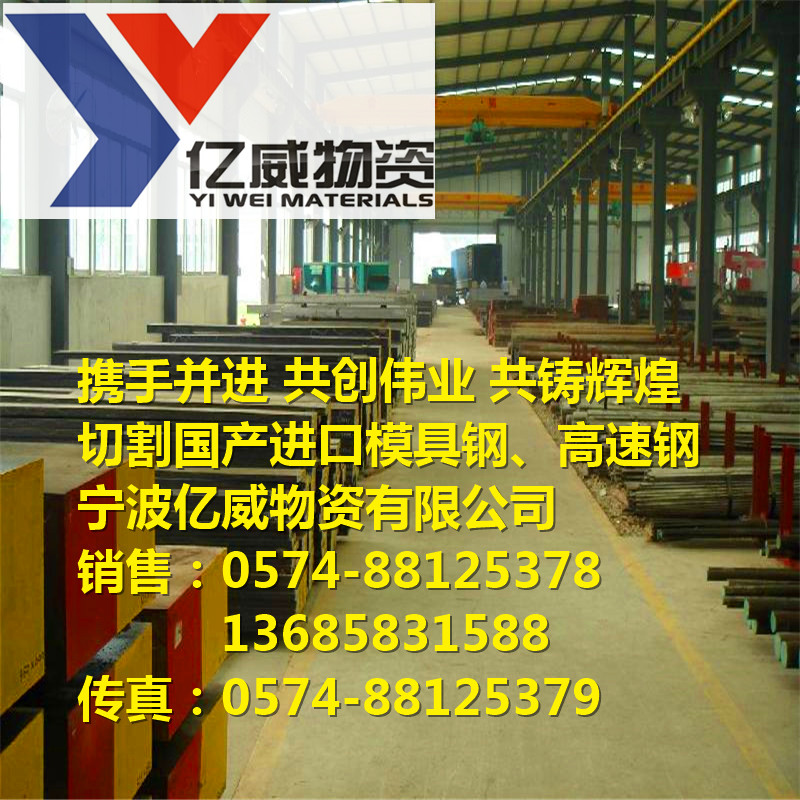 宁波亿威物资有限公司位于长江三角洲经济圈的中心地带----宁波市国家高新区。公司主营:特殊钢,易切削钢,模具钢,军工钢,工业铝材,轴承钢,工具钢,齿轮钢,合金钢,弹簧钢,高速钢,不锈钢等系列材料;同时也提供产品冷拉及抛光、热处理、锯切加工,板料铣磨加工等一站式服务。快捷完善的物流配送,确保客户所定购的材料都能在指定的时间内到货。 在宁波市、上海市、无锡市、大连市、深圳市均设有仓库,
