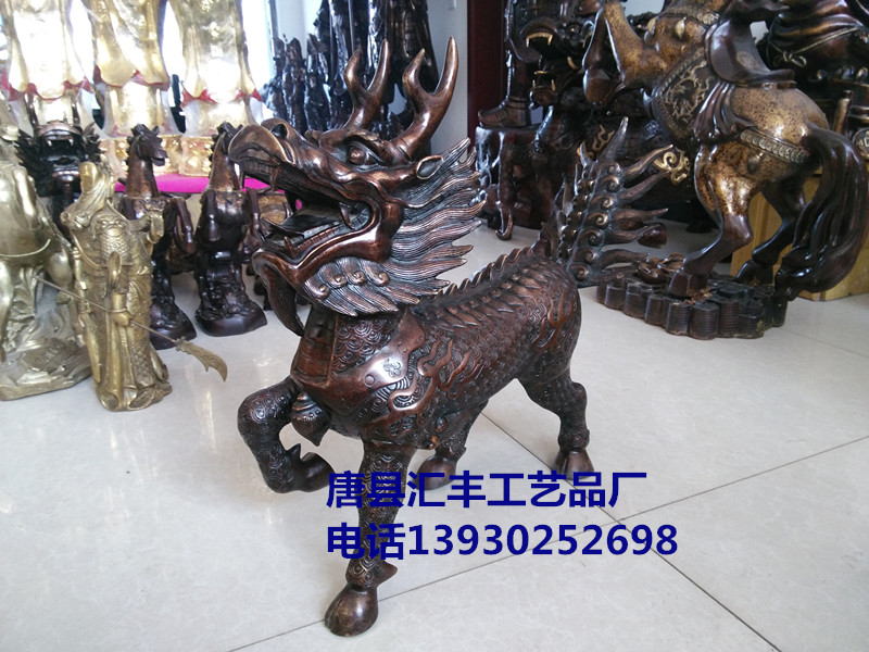唐县汇丰铜雕工艺品厂在铜雕麒麟生产方面有着独到的经验,建厂多年来,为全国各地的朋友提供铜雕麒麟作品无数,因作品做工十分精湛而被广大朋友所信赖.汇丰铜雕以诚信经营为本,以为客户提供优质作品为己任,我们愿永以值的信赖的态度和作品为广大朋友提供更多的铜雕麒麟作品和各种铜雕作品.铜麒麟生产厂家汇丰永远是您最好的选择.