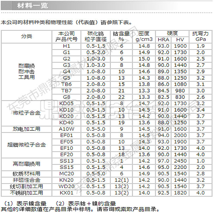 东莞市鼎荔金属材料有限公司——是广东地区规模最大的硬质合金钨钢原材料供应商之一,主要经营品牌有:美国肯纳钨钢(kennamatel)、日本富士钨钢、日本住友钨钢、日本共立钨钢、日本黛洛伊钨钢、日本桑阿洛伊钨钢、台湾春保钨钢、瑞士伊斯泰克钨钢、美国福仕德钨钢、德国钨钢、瑞典山特维克钨钢等系列品牌硬质合金钨钢。特约经销粉末高速钢、瑞典超硬白钢刀、模具专用钢等供应附带相对原厂材质证明和品牌质保书。