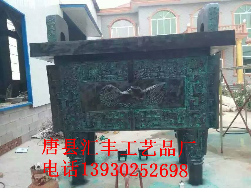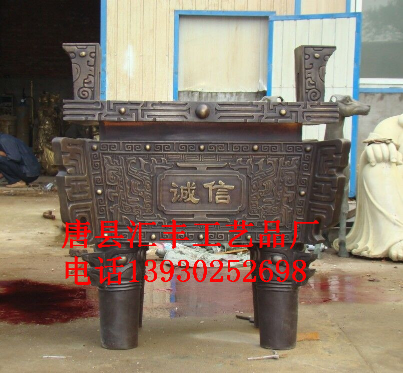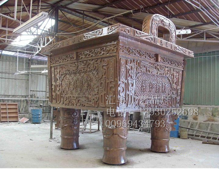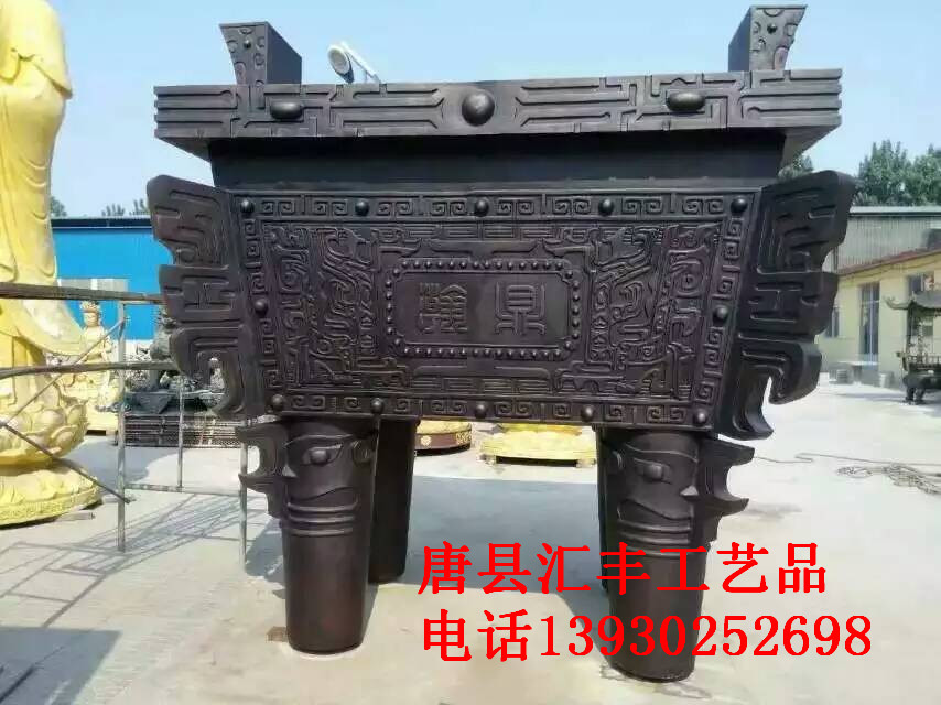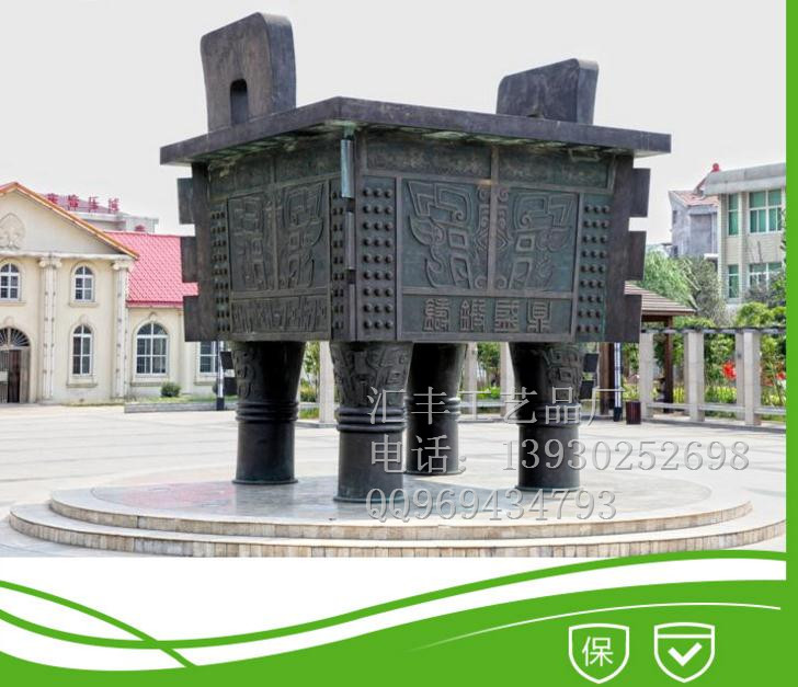 关于“鼎”的来历及作用:鼎本来是古代的烹饪之器,相当于现在的锅,用以炖煮和盛放鱼肉。许慎在《说文解字》里说:“鼎,三足两耳,和五味之宝器也。”有三足圆鼎,也有四足方鼎。最早的鼎是黏土烧制的陶鼎,后来又有了用青铜铸造的铜鼎。传说夏禹曾收九牧之金铸九鼎于荆山之下,以象征九州,并在上面镌刻魑魅魍魉的图形,让人们警惕,防止被其伤害。自从有了禹铸九鼎的传说,鼎就从一般的炊器而发展为传国重器。国灭则鼎迁,夏朝灭,商朝兴,九鼎迁于商都亳(bó)京;商朝灭,周朝兴,九鼎又迁于周都镐(hào)京。历商至周,都把定都或建立王朝称为“定鼎”。 鼎被视为传国重器、国家和权力的象征,“鼎”字也被赋予“显赫”、“ 尊贵”、“盛大”等引申意义,如:一言九鼎、大名鼎鼎、鼎盛时期、鼎力相助,等等。鼎又是旌功记绩的礼器。周代的国君或王公大臣在重大庆典或接受赏赐时都要铸鼎,以记载盛况。这种礼俗至今仍然有一定影响