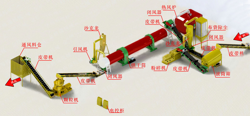 为原料收集→原料粉碎→原料烘干→械制粒成型→装袋销售根据农作物的收获期不同,要及时大量储存原料,随后粉碎、成型。成型时注意不要随即装袋,因热胀冷缩的原理待冷却40分钟后,再装袋运输。