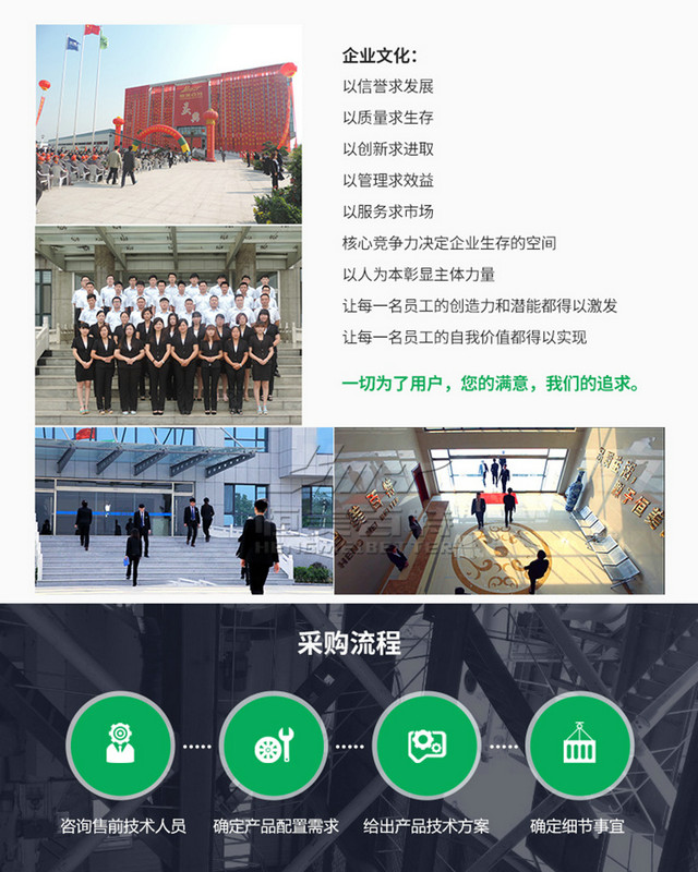 本公司发展秉承高效,节能,环保,安全之理念,对产品技术精益求精。以满足客户需求为最高宗旨,视产品质量为企业的生命。从每一道工序开始,到每一台产品出厂,我们都全程贯彻质量跟踪体系,并对每一个用户建立完善的客户支持方案。公司产品已通过ISO9001国际质量体系认证、欧盟CE认证。可靠稳定的产品质量和良好的企业信誉使公司产销量及各项综合经济指标稳居国内同行业前茅,目前产品已畅销全国各地,并远销到德国、芬兰、俄罗斯、新西兰、韩国、巴基斯坦、印度、孟加拉国、越南、马来西亚、土耳其等20多个国家和地区。