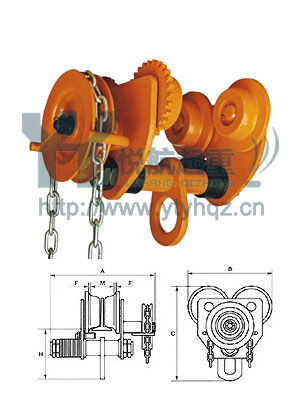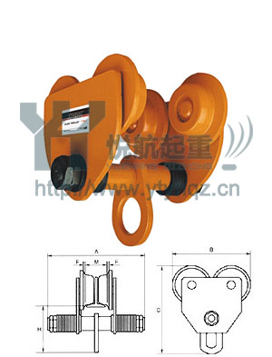 单轨小车分手推单轨小车和手拉单轨小车两种,手拉单轨小车以手链驱动,手推单轨小车以手推吊重物驱动能自如地行走于工字钢轨的下翼缘上,而且车轮轮缘间距可以按工字钢轨道宽度要求调整,将手动葫芦悬挂在行车下方,可组成手动起重运输小车应用于各种起重机械设备行业。