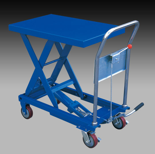 手动液压平台车,是一种小型升降机械,主要用于小范围的升降,物品提取、摆放,还用于搬运小型贵重物品。产品外观大方美观、结构牢固、稳定安全可靠,内在性能和使用寿命已达到同等设备先进水平。目前市场主流为液压驱动升降,由于体积小巧,移动方便广泛应用于物流运输、仓库管理,图书馆、超市、及普通小型设备制造业。手动液压平台车采用高强度钢材制作而成,设计结构合理,安全平稳可靠,内装安全阀,全密封油缸,手动控制液压系统升降,操作方便简捷。  配有尼龙导向轮向轮节省操作者的体力,并能保护载重轮与托盘载重轮。独特液压泵设计,起泵简便为流水线装载和卸载操作保持一个理想高度而设计;加上独特人体工学设计,使操作者操作舒适。手动液压搬运平台车设计新颖,机构合理,使用方便.适用于工厂、车间、仓库、油库的园桶装卸、搬运、堆垛.特别适用于化工,食品车间倒料或配料使用,并可将重物装卸汽车、堆垛,配合液压圆桶搬运车作业,可以极大地提高工作效率,减轻工人的劳动强度,也可以将它改装用于装卸、起升重物,是一种新型理想的多用途的起降装卸机械.  手动平台车又名手动液压平台车,平台下降控制为旋扭或扳手控制,踏动塌脚杆操纵油泵,使工作台面平稳上升。操纵控制旋钮或向上提升扳手,使工作台面平稳下降,  车架底部配有万向轮,可向任意方向旋转,操作灵活简便。该系列产品通过提升平台至适当的高度,减少工人因搬运、弯腰引起的受伤几率,大幅度降低工人的牢度强度。提高工作效率,手动液压平台车广泛应用于工厂,超市,车队运输。产品特点:重符合钢结构。  为提升桌面高度至需要的水平,简易的脚操作。  有安全轮保护的牢固小脚轮和位于两个旋转脚轮的制动器,是为了轮子装载和卸载时更加安全。  手操作桌面减少控制。  超重旁道阀门保护操作器和油泵。  可选:镀铬手柄,上漆手柄,折叠手柄和坚固手柄。