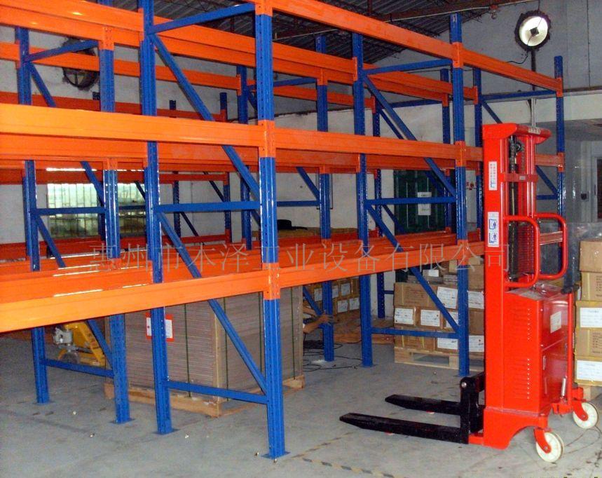 ■通常货物通过托盘、仓储笼等单元集装设备整装后存入货架保管。每单元载重一般在2000kg以内,每层通常放两个单元。 ■是最普遍和广泛使用的货架之一,适合绝大多数仓库或产品货物使用。 ■具有100%的货物任意拣选特性。搬运机械如叉车等可到达任意货位进行存储作业,存储作业方便、快捷! ■以机械搬运设备进行存储作业。 ■单元货架跨度一般在4m以内,深度在1.5m以内,低、高位仓库货架高度一般在12m以内,超高位仓库货架高度一般在30m以内(此类仓库基本均为自动化仓库,货架总高由若干段12m以内立柱构成)。 ■能够以75mm的整数倍自由调节每层层高。 重型(横梁式)货架一般采用冷轧异型钢制作,立柱由80(90)x60(70)Ω型钢表面冲菱形孔而成,横梁由80x50-100x50-120x50-140x50-160x50抱焊梁连接挂件而成,一般用托盘代替层板方便叉车搬运。层载重1吨到5吨的设计,表面静电喷塑,防水防锈防腐蚀能力更强,安全系数高,插接式组合,不需要用螺丝和焊接,组装非常方便,充分利用空间面积,提供仓储能力。
