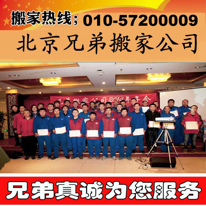 兄弟搬家公司24小时营业服务热线:010-87777783服务监督:010-57200009 010-57269997兄弟搬家公司是国际知名品牌是集居民搬家、办公室搬迁、搬家货运、长短途运输、临时仓储、物品包装、拆装家具、计时工服务、钢琴搬运、重型设备迁移、空调移机、服务器搬迁为一体的大型搬家