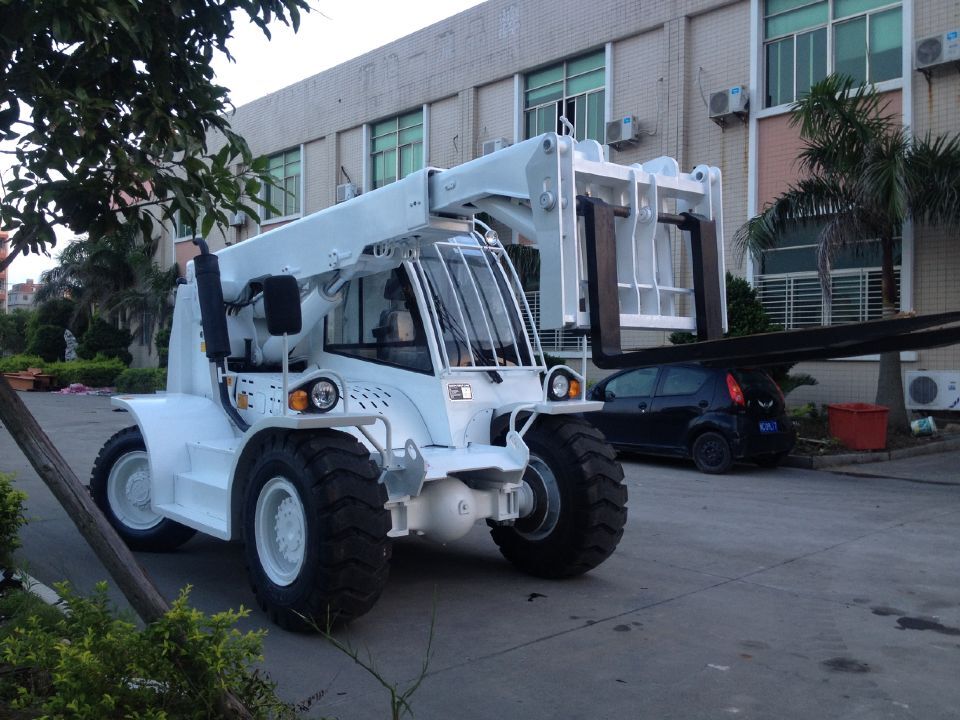 建筑工地:建筑材料的卸车和短途运输,将建筑材料直接投放到作业点,或给汽车吊、塔吊喂料;工地各种物料的搬运和场地清理;使用高空作业平台进行高空安装;使用玻璃吸盘安装幕墙等等。