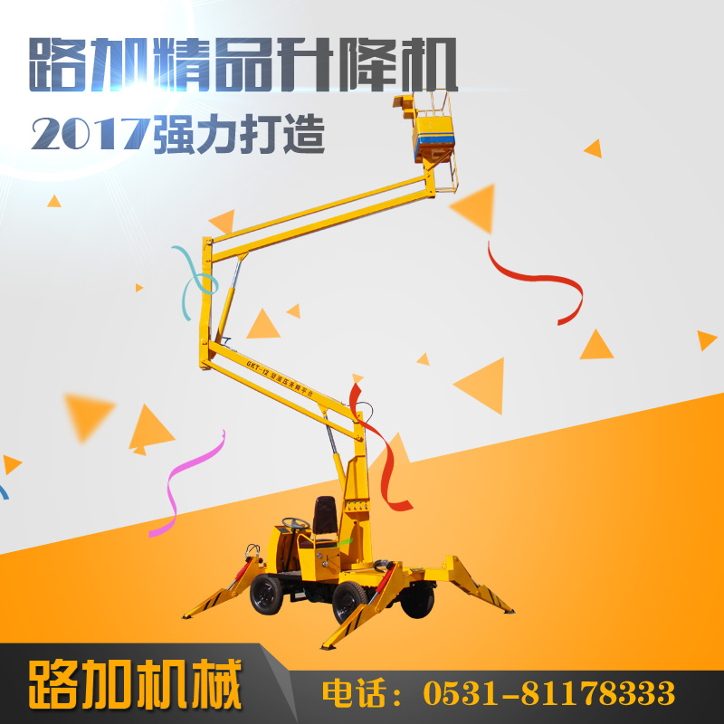 适用范围:曲臂式高空作业车广泛适用于市政、电力、路灯、广告、通讯、摄影、园林、交通、码头、机场港口、大型工矿企业等行业的安装维修及登高作业。用于野外各种崎岖地形,空间作业范围广,主要用于建筑,桥梁建设、船舶制造、机场、矿山、港口码头、通信和电力设施的施工及户外广告的工程机械设备。