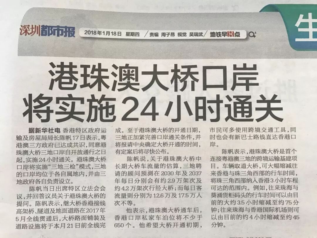 港珠澳大桥通车后,香港口岸私家车泊位将不少于650个。