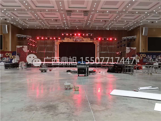 广西南宁鼎旭文化传播有限公司是一家专业为婚庆、开业、典礼、会展等活动提供方案策划、会场布置等服务的企业,公司拥有5000米铝全金桁架、500平方米舞台板、100LED屏、100平方米玻璃舞台、4台不同规格的运输车辆(不受线路和高峰期影响)以及十多名施工人员,公司设备完善、人员充足、收费合理,是南宁市目前的桁架、舞台搭建服务商,能全天候为客户提供快捷的布展服务。