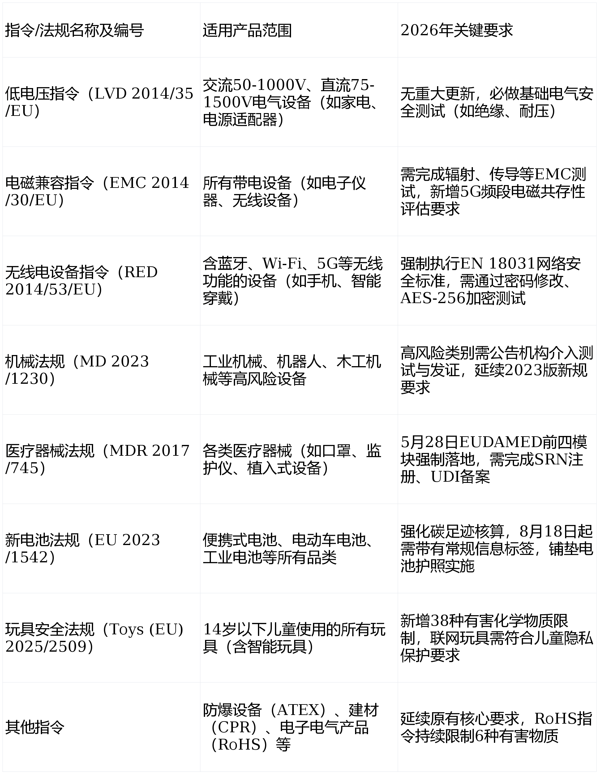 明确产品对应指令:梳理产品功能、电压、使用场景,匹配上述核心指令,避免遗漏(如智能手表需覆盖LVD+EMC+RED);