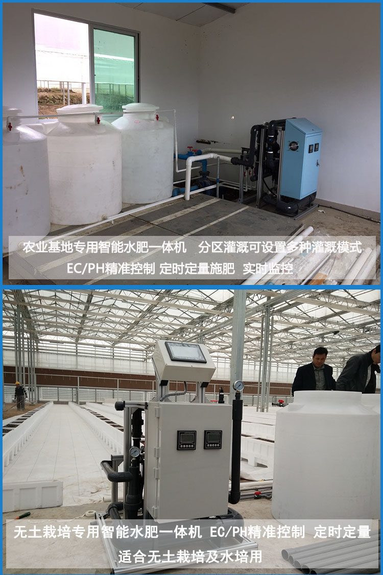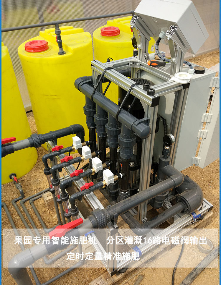 答:我们的智能水肥一体机主要应用于无土栽培、水培、果园、温室大棚及大田都可使用。