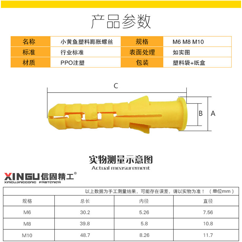 胀国标原料塑料胀管栓胀塞胀钉小黄鱼塑料