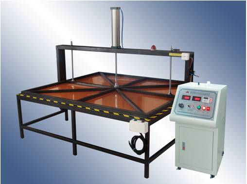 耐压工作台采用气动控制系统,单侧起落,单侧固定转轴,通过上台面的自动开合实现试品的压合动作和供电测试;或采用气压或液压顶起机构(非自动),通过人工辅助动作实现上台面的开合(该方式下操作人员通过顶起机构的省力结构可以方便地操作,其结构相当于汽车后尾箱的顶起机构)