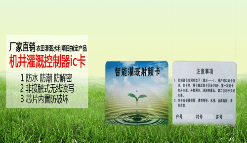灌溉射频卡采用的是荷兰飞利浦进口芯片设计,包括用户卡、设置卡、检查卡、和管理卡。用户操作简单,一刷上水浇地,二刷水泵停止供水,余额不足自动提醒交费。