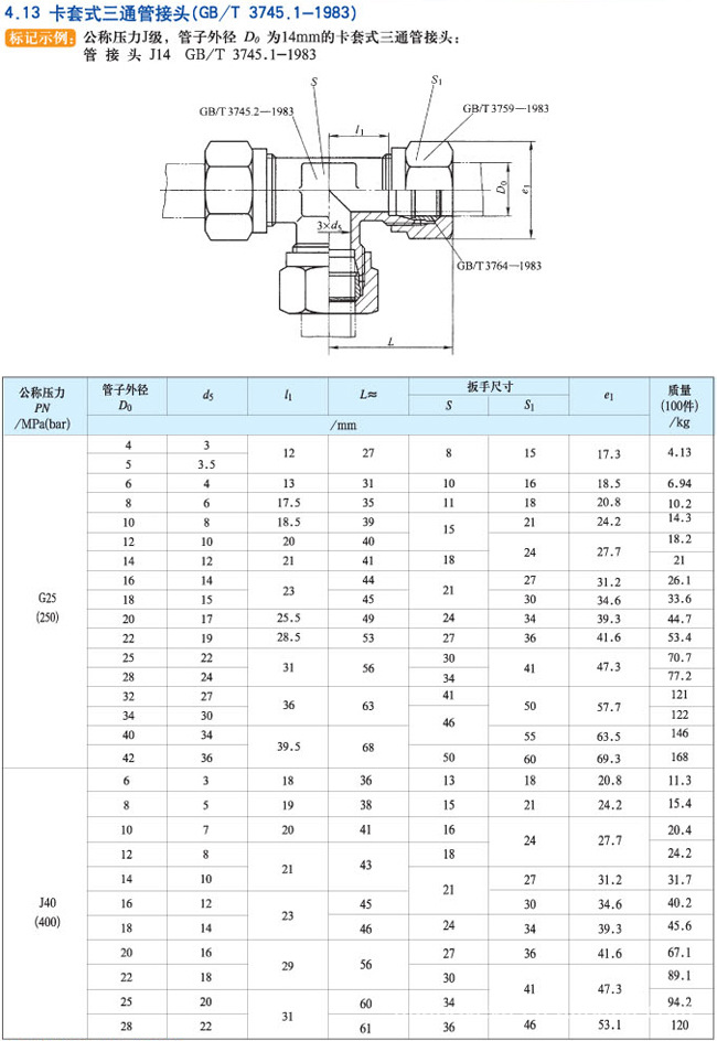 卡套式三通管接头GB3745.1-83: