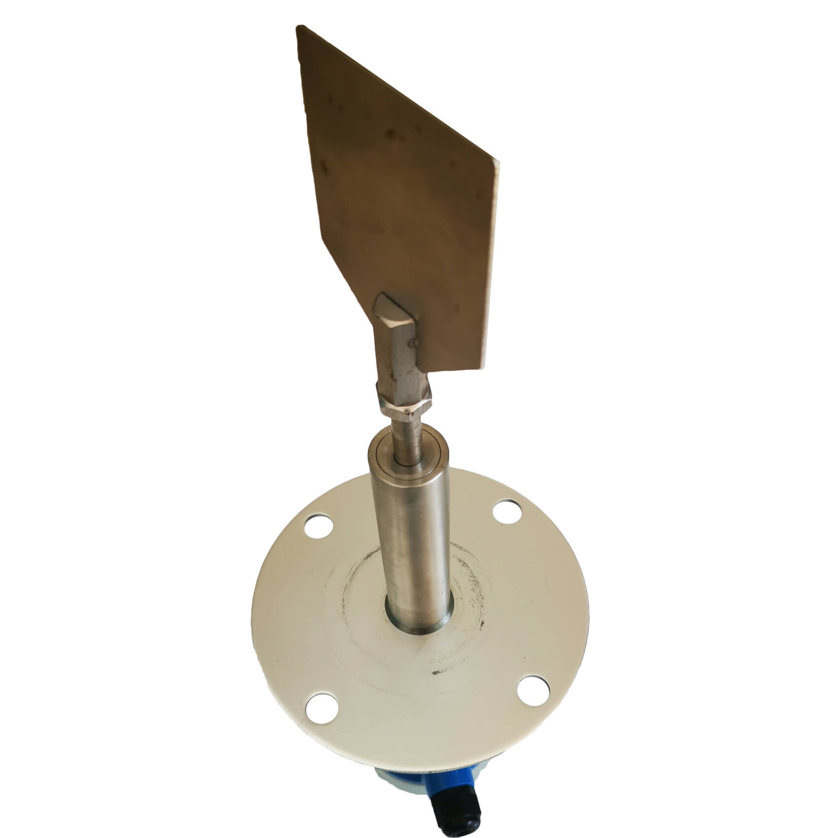 电机带动叶片旋转,当被测介质到达叶片位置时,叶片受阻停止转动,从而触动后面的微动开关输出开关信号,当被测介质下降离开叶片时,叶片在弹簧的作用下恢复原位继续转动。弹簧的拉力可根据所测介质的比重进行调整,物料比重大时弹簧调整到最强,反之调至最弱。