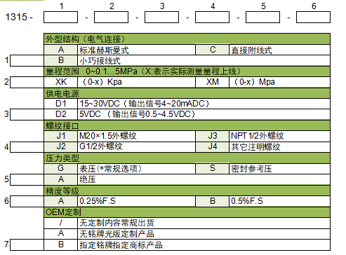 | 0~70KPa | 70K | 0~600KPa | 600K | 0~7.0MPa | 7M | 0~100MPa | 100M | ||||||||||||
