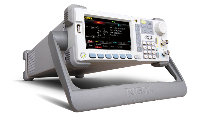 DG5000集任意波形发生器、脉冲发生器、IQ基带源/中频源、跳频源、码型发生器、函数发生器6大功能于一身,该系列包括单、双通道型号,两通道的功能完全对等,通道间相位精确可调。