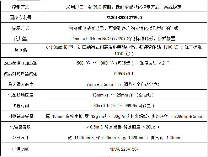 灼热丝试验仪是依据 GB 4706.1、GB 7000.1、IEC60695-2-10~ IEC60695-2-13 《灼热丝 / 热线,基本试验方法,灼热丝试验装置和通用试验程序》和 UL 746A、 IEC829 、DIN695 、 VDE0471 等标准规定使用无火焰起燃源程序仿真试验项目。