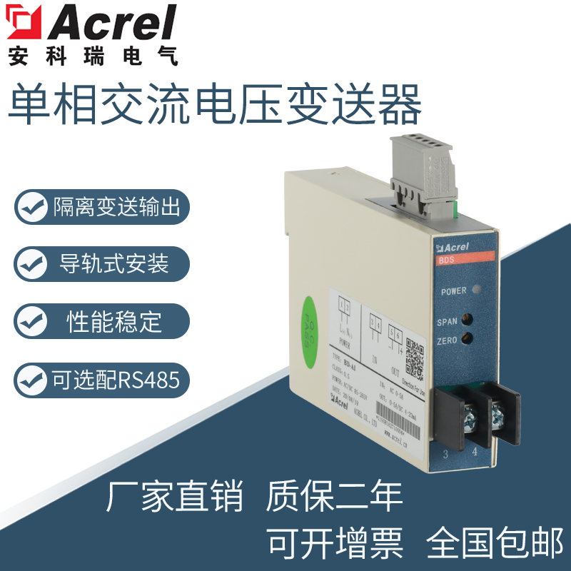 测量单相交流电压,隔离变送输出4-20mA或0-5V DC信号