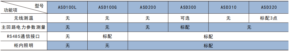 产品按功能分为 ASD100L 、 ASD100G 、 ASD200 、 ASD300 、 ASD310 、 ASD320 六种型号。