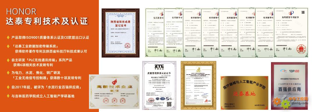西安达泰电子有限责任公司创立于2002年,是一家集工业无线产品研发、生产、销售于一体的“智”造企业,产品具有“可靠、简单、智能”的特点,能够直接取代传统线缆,实现工业数据信号的无线传输。近20年间,达泰先后获得多项发明,常年与国内top50高校进行产学研合作、水泥行业供应商,同时也逐步组建起了一支具有丰富现场经验的PLC无线通讯团队,为客户提供多方位的技术保障。现已为国内外超30000家工厂企业成功实现近15万个无线采集测控方案设计和改造项目,投入使用的设备超100万套。DTD1系、4系无线产品广泛应用于水泥,冶炼,发电,煤炭,化工等复杂恶劣的工业场合,平均连续使用寿命超过5年以上。
