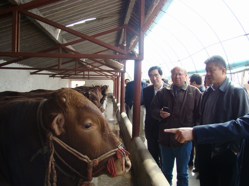 主要从事种牛、小尾寒羊、波尔山羊的繁育、冻精、胚胎生产和销售,育种技术的研究与推广。冻精生产的主要仪器设备全部从德国米尼秋博(Mini-tubo)公司配套引进。我们有世界上最先进的仪器与养殖技术。 中心现存栏种公牛5660头,纯种母牛6120头,后备种牛2050头。其中:西门塔尔、利木赞、夏洛来三个品种牛为加拿大原种引进或经纯种繁育所产后代,波尔山羊种公羊全是从南非和德国原种引进有国家正规的种公羊编号。荷斯坦牛是经胚胎移植所生后代。公司每年可向社会提供优质种牛冻精200万剂,胚胎2500枚,优秀良种肉牛犊10万头以上。截止2006年7月末已累计销售优质冻精850多万剂,改良本地鲁西黄牛450万头,向全国各地提供种牛50000多头。欢迎广大肉种牛养殖户,屠宰户前来选购种牛和肉牛犊。 中心同山东农业大学、省农业科学院、山东大学及省畜牧兽医研究所等科研院所联合承担多项省市重点科研课题,取得多项科研成果。并将科研成果及时进行推广应用,取得了巨大的社会效益和经济效益。先后完成了《优质肉牛生产产业化模式的研究》、《加系良种肉牛改良效果测定》、《胚胎生物技术在肉牛产业化中的应用》、《不同畜禽蛋白源的优选研究》、 《农作物秸型牛饲料优化研究》、《优质高效肉牛繁育综合配套技术》 、《牛鲜胚移植技术研究与应用》、《肉牛犊的短期育肥技术》 等课题的研究和国家农业行业标准(利木赞牛标准、西门塔尔牛标准、夏洛来牛标准)的制定工作。