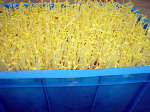 4. 该机采用全封闭,自动控温设备,分批投豆循环生产。每天均可产豆芽菜100~800公斤(具体日产量可根据需要任意控制)。直接用照明电,对电压高低不敏感,不受季节气候、地理位置和环境的影响,一年四季均可生产。在生产过程中停电48小时不影响产品生长,但如停电时间过长,虽不影响产品质量,但会影响产品生长周期,所以在必要时可人工补充水分,以稳定产品生长周期。日耗电0.5度。