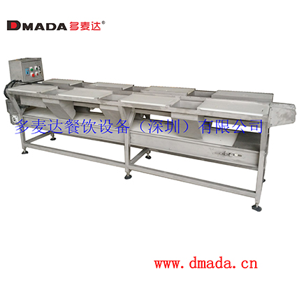 本机利用皮带运行输送出料,皮带输送挑选,操作工位分两边,工人将废杂物拣出,放入废料处。本机主要用于蔬菜、水果等物料的挑选,该机具有挑选效果好、操作简便等优点。在流水生产线中,该设备通常和其他入料口要求高的设备搭配使用,满足生产的自动化的需要。