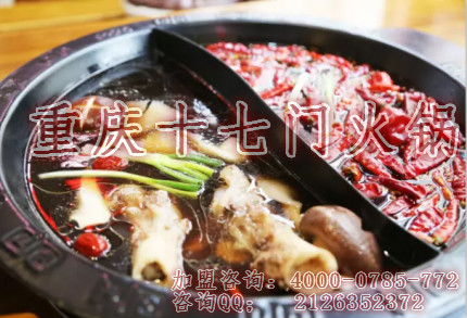 重庆十七门火锅传承重庆老火锅技艺,火锅底料配方由品牌创始人特制,在保持重庆老火锅原滋原味的前提下加入各种营养药材。吃辣也不会上火,吃得油的同时也不会觉得有腻味感。重庆十七门火锅随时期待你的加入。