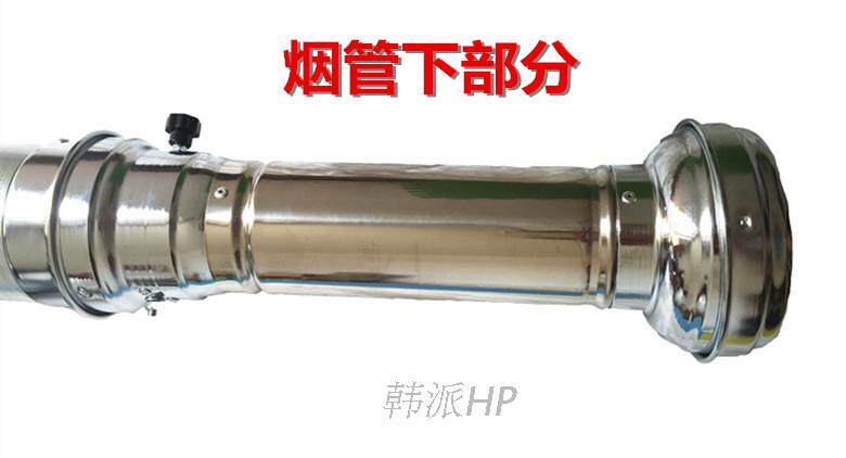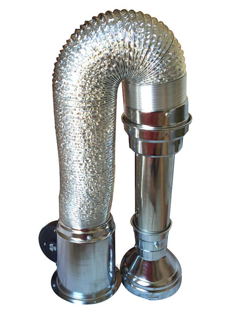 烟管下面有接油口,配有控制风阀,可根据房屋间距来定做长短。烟管两端的硬管为优质钢材电镀制作,中间采用韩国进口铝箔软管连接,内部配有进口弹簧,上下垂直拉伸到任何位置都可固定住。