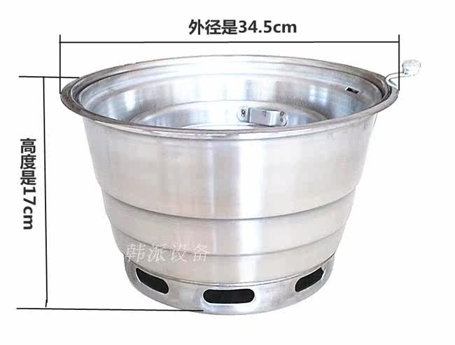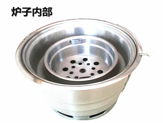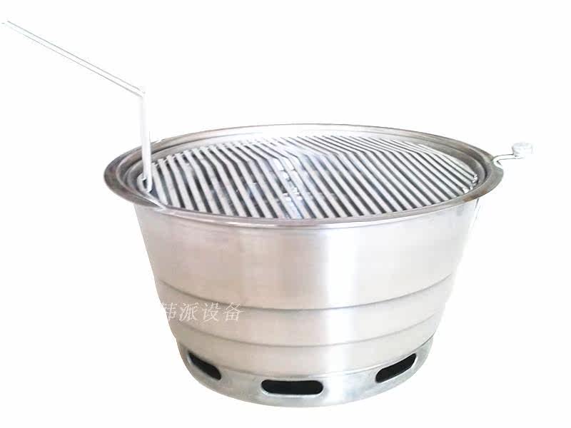 烧烤炉采用优质不锈钢制作,为圆形,更耐用易清洗,加深了水盆,减少了在烤肉的过程中频繁加水的麻烦。(水盆深度约3.2cm)。适用于韩式烧烤店、韩式料理店及日式烧肉店或者中式自助烧烤店。由于使用原料为木炭,烧烤中会产生一些油烟,所以一般在室内使用都需要安装排烟设备,可以使用上排烟管道或者上烟下排的排烟管排出油烟;户外使用也可以不用排烟设备。