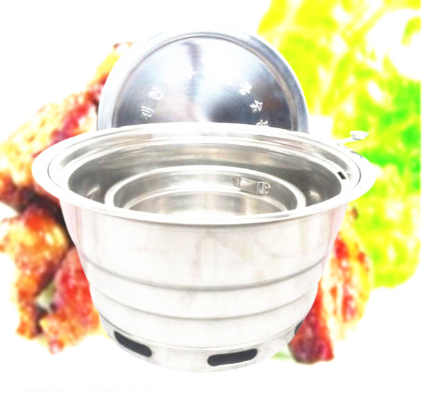 烧烤炉采用优质不锈钢制作,为圆形,更耐用易清洗,加深了水盆,减少了在烤肉的过程中频繁加水的麻烦。(水盆深度约3.2cm)。适用于韩式烧烤店、韩式料理店及日式烧肉店或者中式自助烧烤店。由于使用原料为木炭,烧烤中会产生一些油烟,所以一般在室内使用都需要安装排烟设备,可以使用上排烟管道或者上烟下排的排烟管排出油烟;户外使用也可以不用排烟设备。