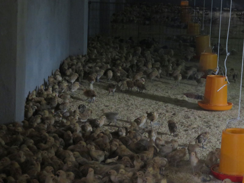 (2)定期消毒对周围环境、圈舍、设备用具如食槽、水槽(饮水器),笼具、断喙器、刺种针、注射器、针头进行定期消毒。鸡出栏后对林地场地环境、鸡舍全面清洗消毒,彻底消灭微生物,使环境