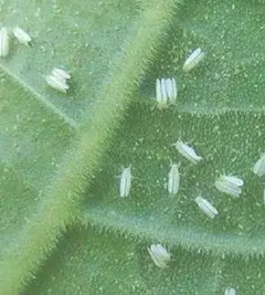 田间危害:粉虱为害蔬菜,表现有二:一是由于其自身分泌蜜露,常造成茄子等蔬菜叶片发生煤污病,影响蔬菜叶片的光合作用,从而导致产量降低。二是粉虱是传播病毒病的重要媒介。