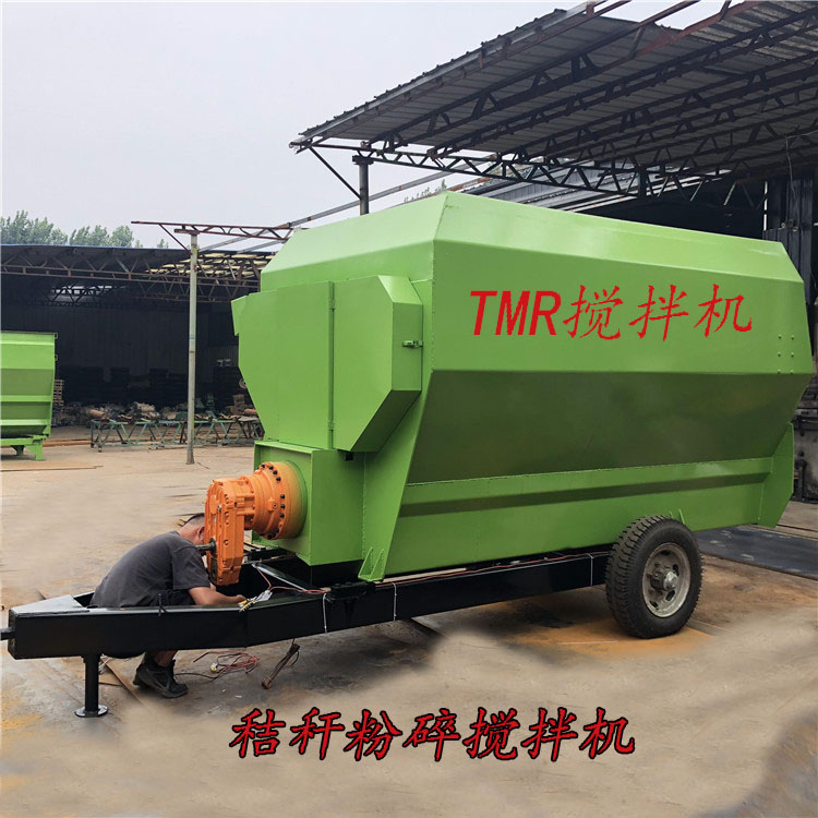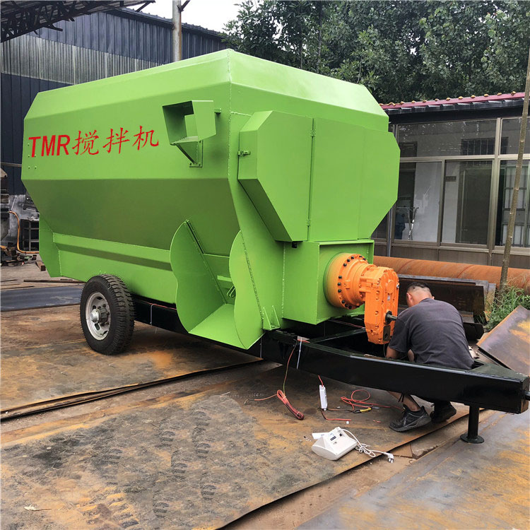 TMR饲料搅拌机是把切断的粗饲料和精饲料以及微量元素等添加剂,按奶牛不同饲料阶段的营养需要,分混合的新型设备。从而达到科学喂养的目的。TMR是英文Total mixed rations(全混合日粮)的简称。TMR制备机是奶牛的“厨师”,“厨师”的水平高低直接关系到奶牛“口粮”的好坏。根据TMR制备机搅龙的排布方式以及产品外观