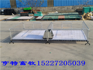 双体保育床,是由18块600*700的塑料板组成。塑料板采用都是双筋的,圆孔的,承重强,又不会伤害小猪蹄子。底架是球磨铸铁7跟杠,4跟花梁,6个腿组成,跟产床的底架是一样的。