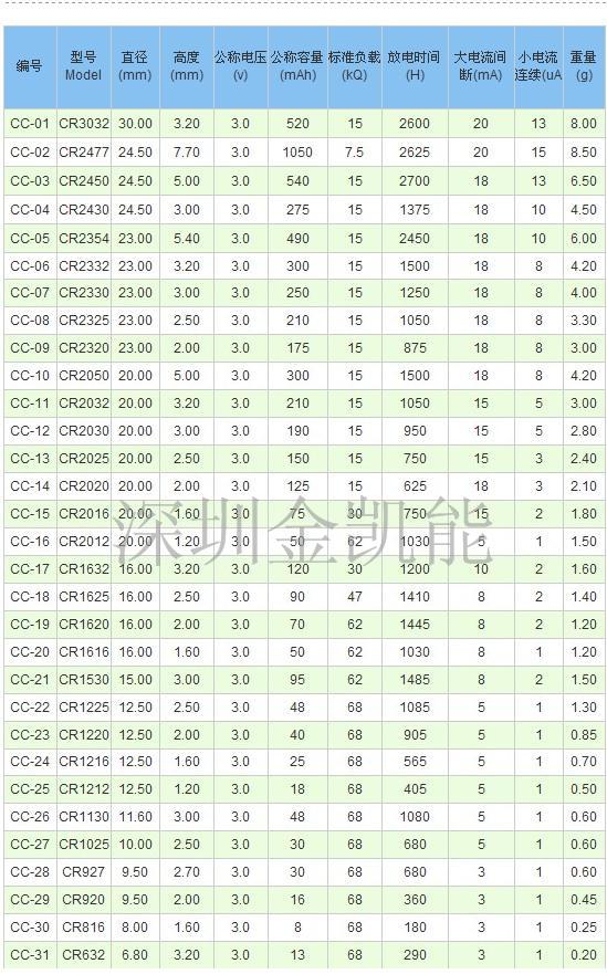 6、锂电池系列:CR2032 CR2025 CR2450 CR123A