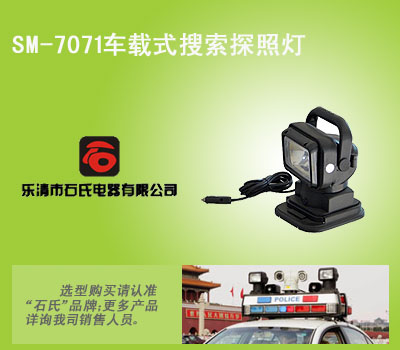 SM-7071车载式搜索探照灯、车载式无线遥控探照灯、强光远距离搜索灯适用于巡查、交通勘查、户外搜索、电力抢修、工程施工,更能提供救灾救难最佳照明以争取时效;是海岸巡防、水上应急、湖海搜救、渔船、游艇等海上作业强而有力的巨眼。