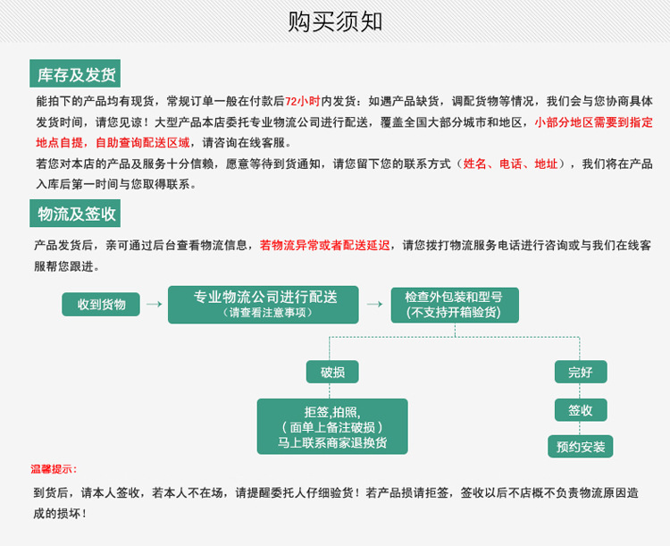 3、因本产品比较特殊,多件一律发物流(需要自已去提货),发货的物流公司将以最低价格到达买家城市的为准。