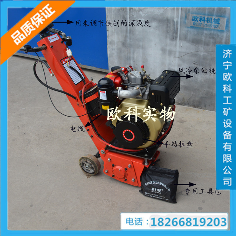 路面铣刨机是一款简易型地面调平处理机械,它是为适应小范围或小区域的施工作业而推出的一款路面铣刨机械!型号有OK-200型、OK-250型、OK-300型等,分电动式和燃油式两种,小型路面铣刨机的最大特点是机型体积小,机身质量重,作业无振动!而且施工准备工作简单,可临时施工,随时撤离,移动非常方便,不需要担心郊外或远路程作业所带来的麻烦,也不必考虑因市政养护施工而带来的交通不便,更不受季节的影响,而且小型路面铣刨机的购买成本非常低,是大型铣刨机的1%,日常更是不需要特别维护,因此小型路面铣刨机深受用户的喜欢,它的实用价值是其他大型设备无法比拟和取代的。