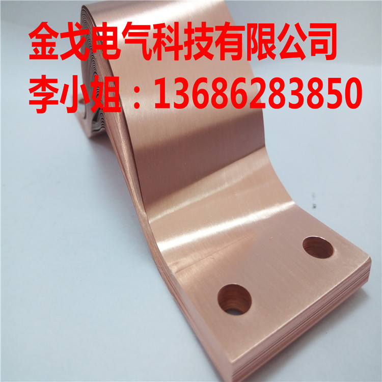 金戈电气技术:压焊软联接 金戈压焊是将铜箔叠片有些压在一起,选用分子松散焊,通过大电流加热压焊成型。