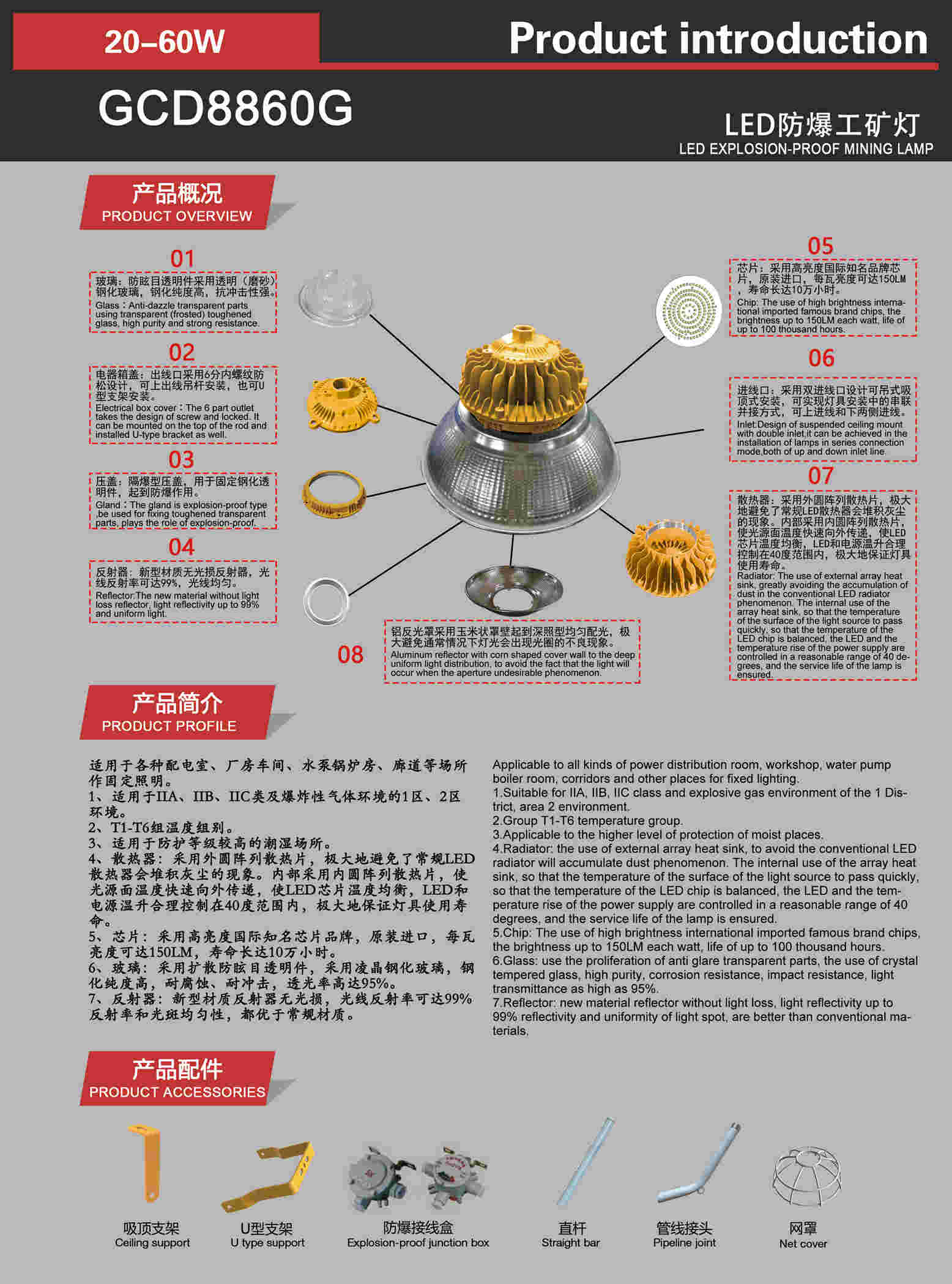 60wled防爆工矿灯,led防爆60w工矿灯,60wled防爆吸顶工矿灯GCD8860G的彩页展示: