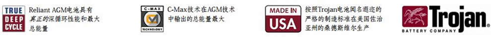 ● Reliant? AGM电池,采用 C-Max Technology? (技术),适用于需要无外溢的电池设计提供深循环动力的地板机应用。