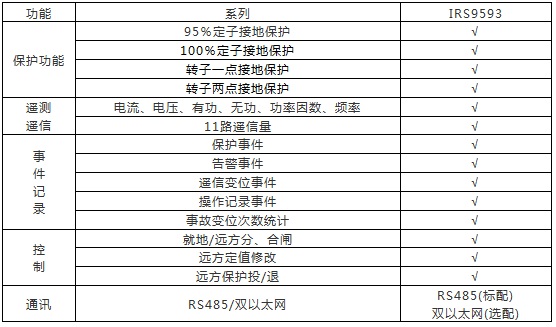 IRS9593适用于中小型机组的接地保护。